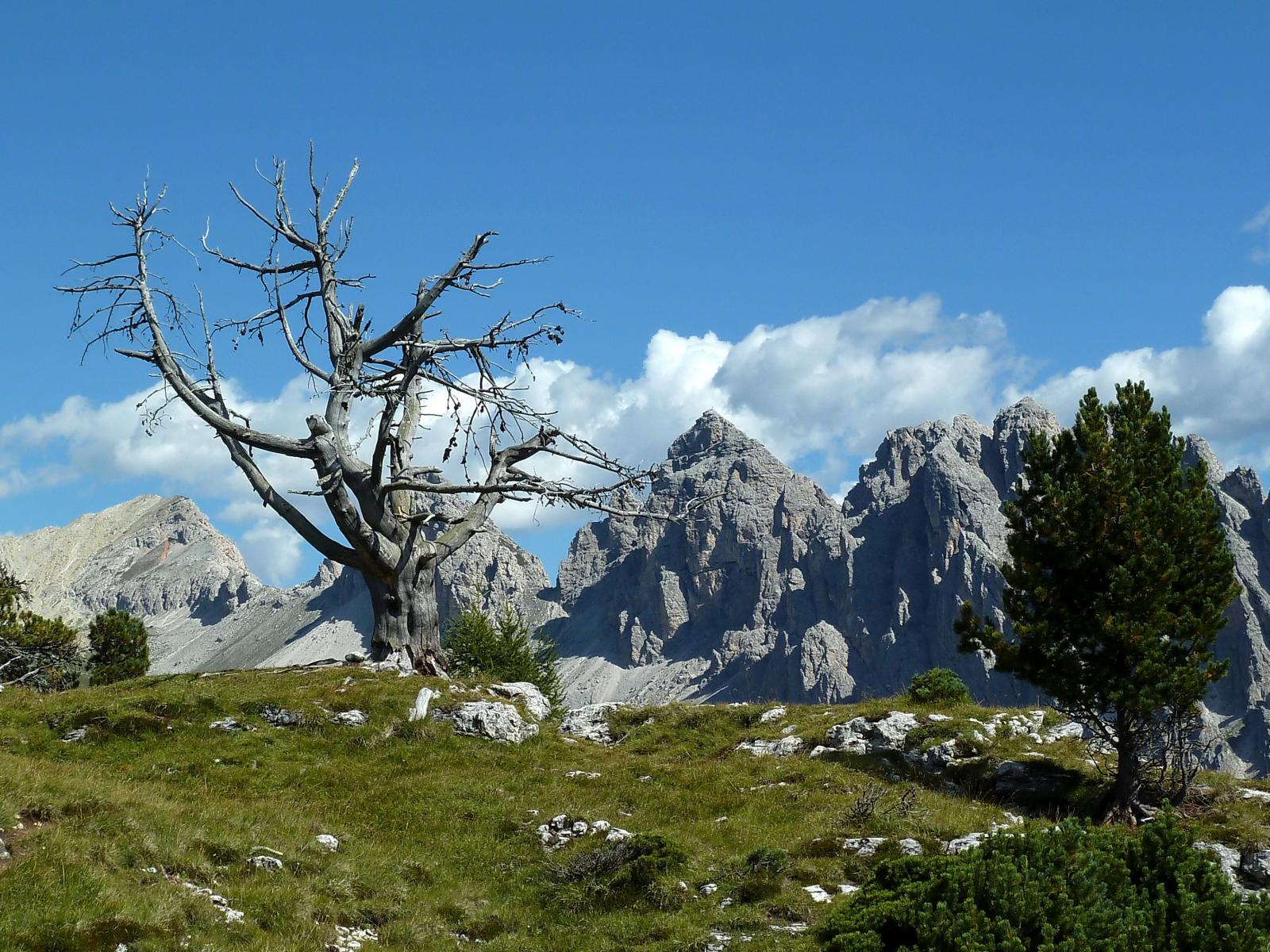 Обои Сухое дерево на горнолыжном курорте Сельва, Италия