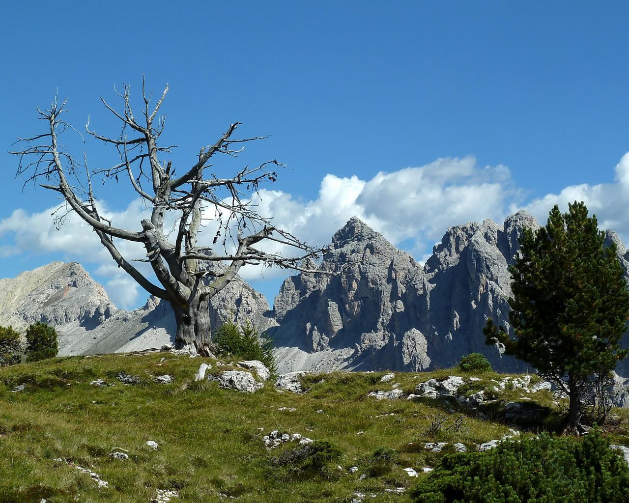 Обои Сухое дерево на горнолыжном курорте Сельва, Италия