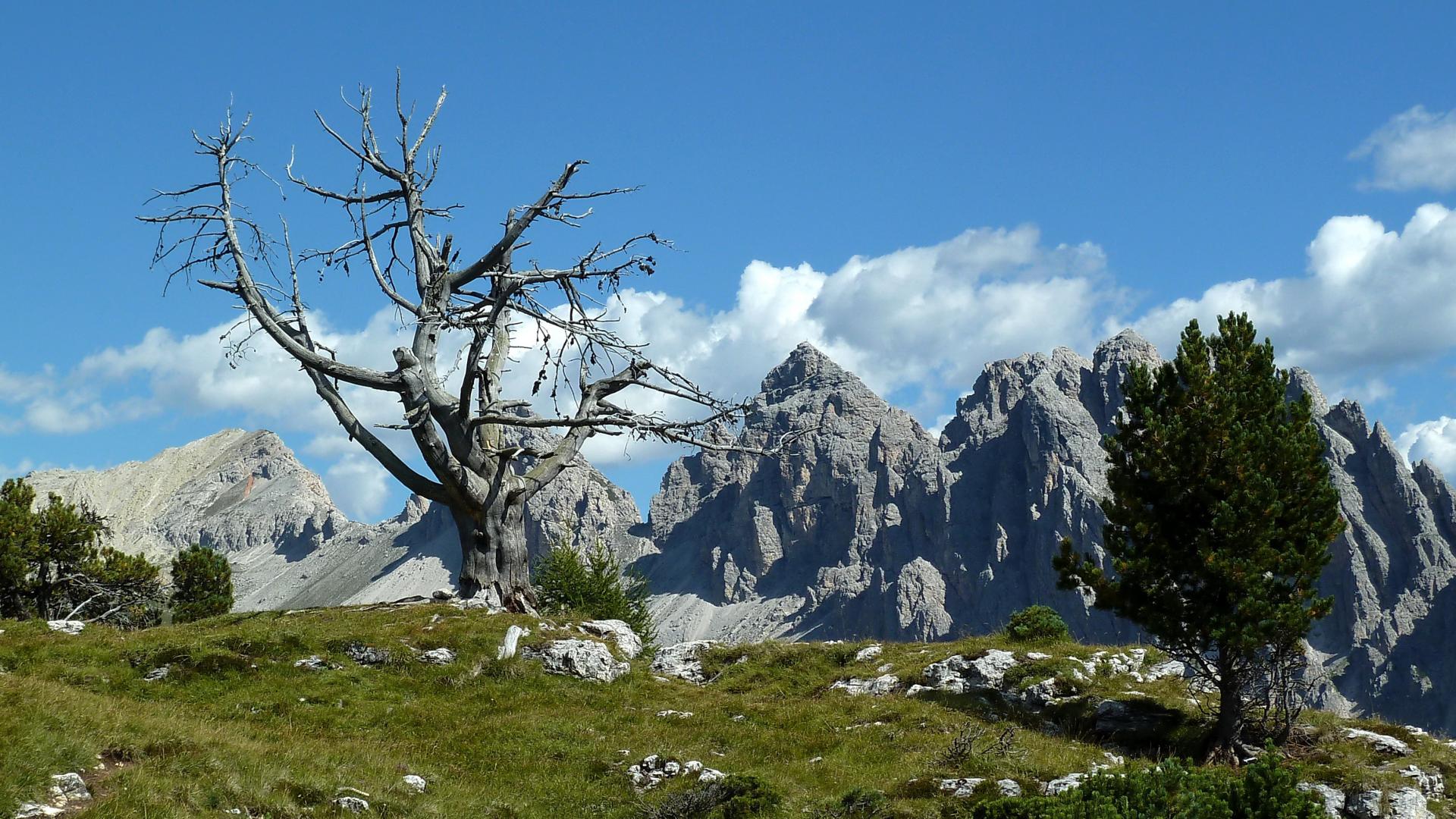 Обои Сухое дерево на горнолыжном курорте Сельва, Италия