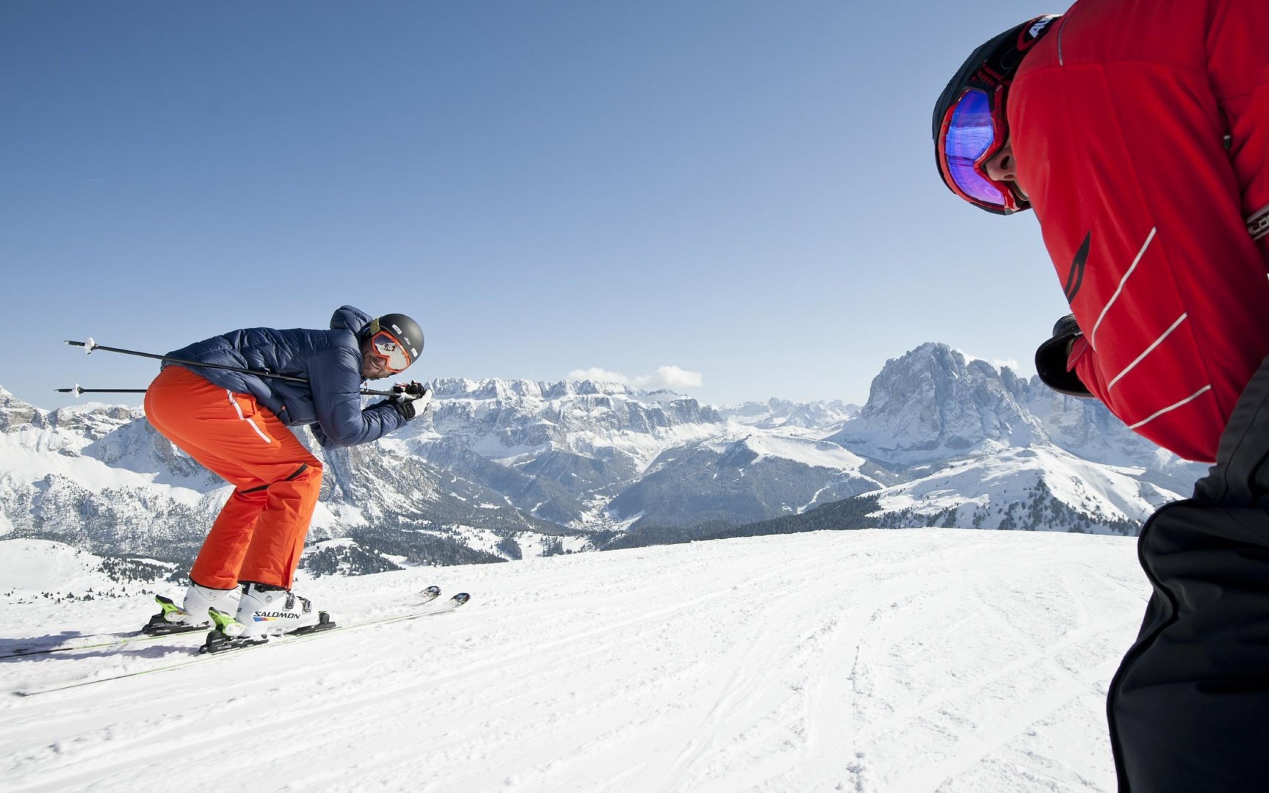Обои Катание на лыжах на горнолыжном курорте Сельва, Италия