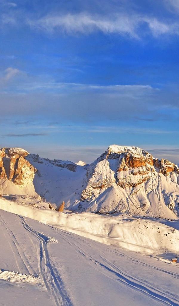 Обои Закат в горах на горнолыжном курорте Сельва, Италия