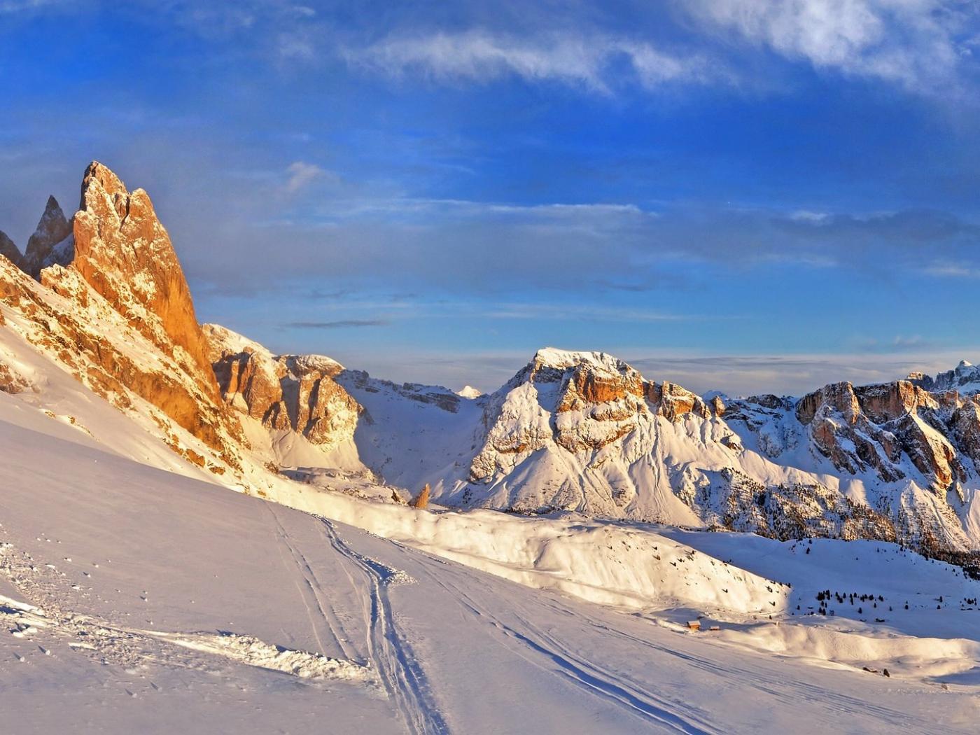 Обои Закат в горах на горнолыжном курорте Сельва, Италия
