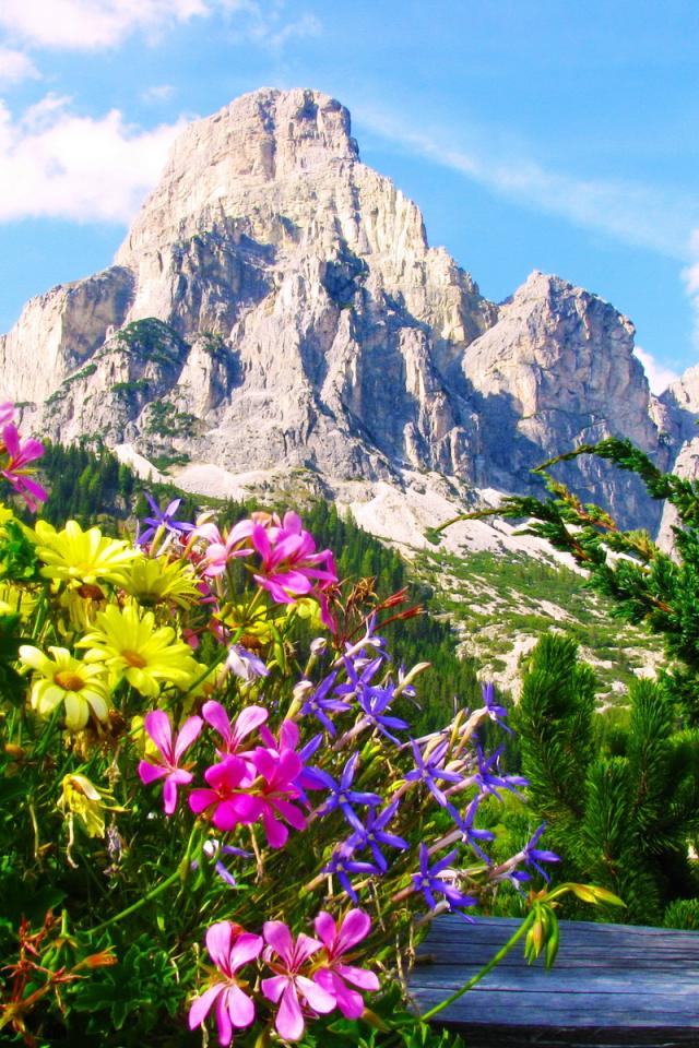 Обои Альпийские цветы на горнолыжном курорте Сельва, Италия
