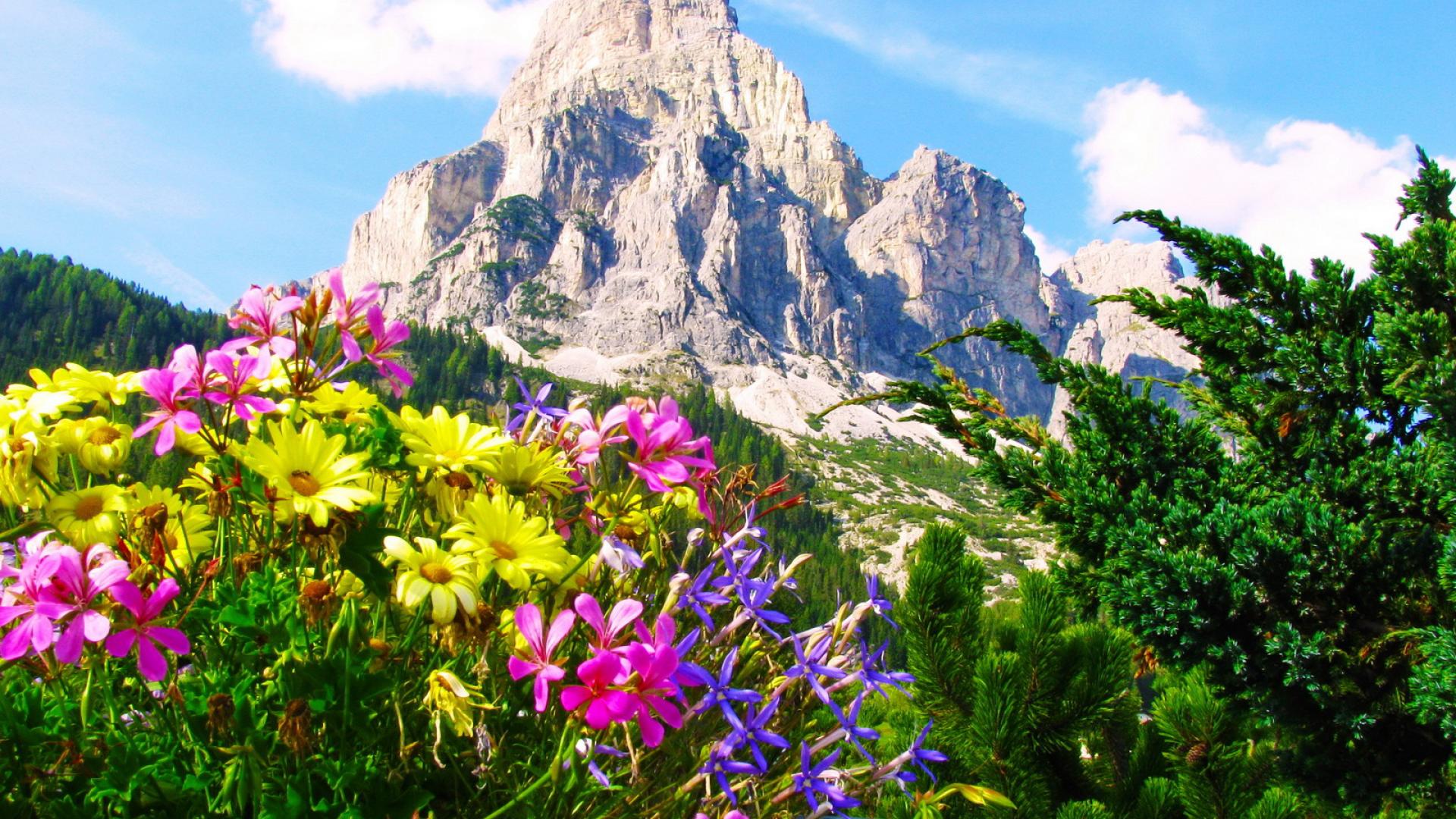 Обои Альпийские цветы на горнолыжном курорте Сельва, Италия