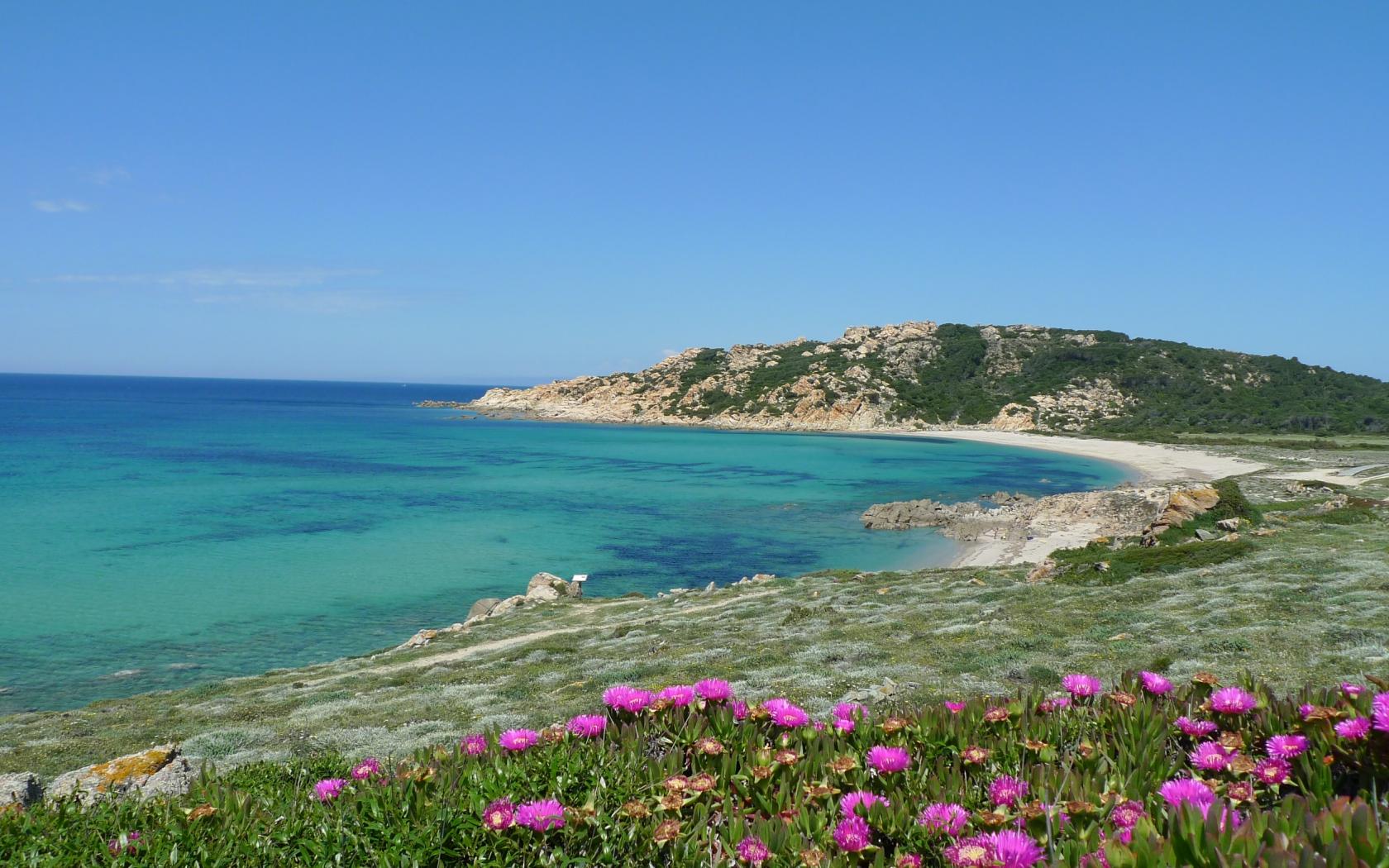 Обои Цветы на берегу моря на острове Сардиния, Италия