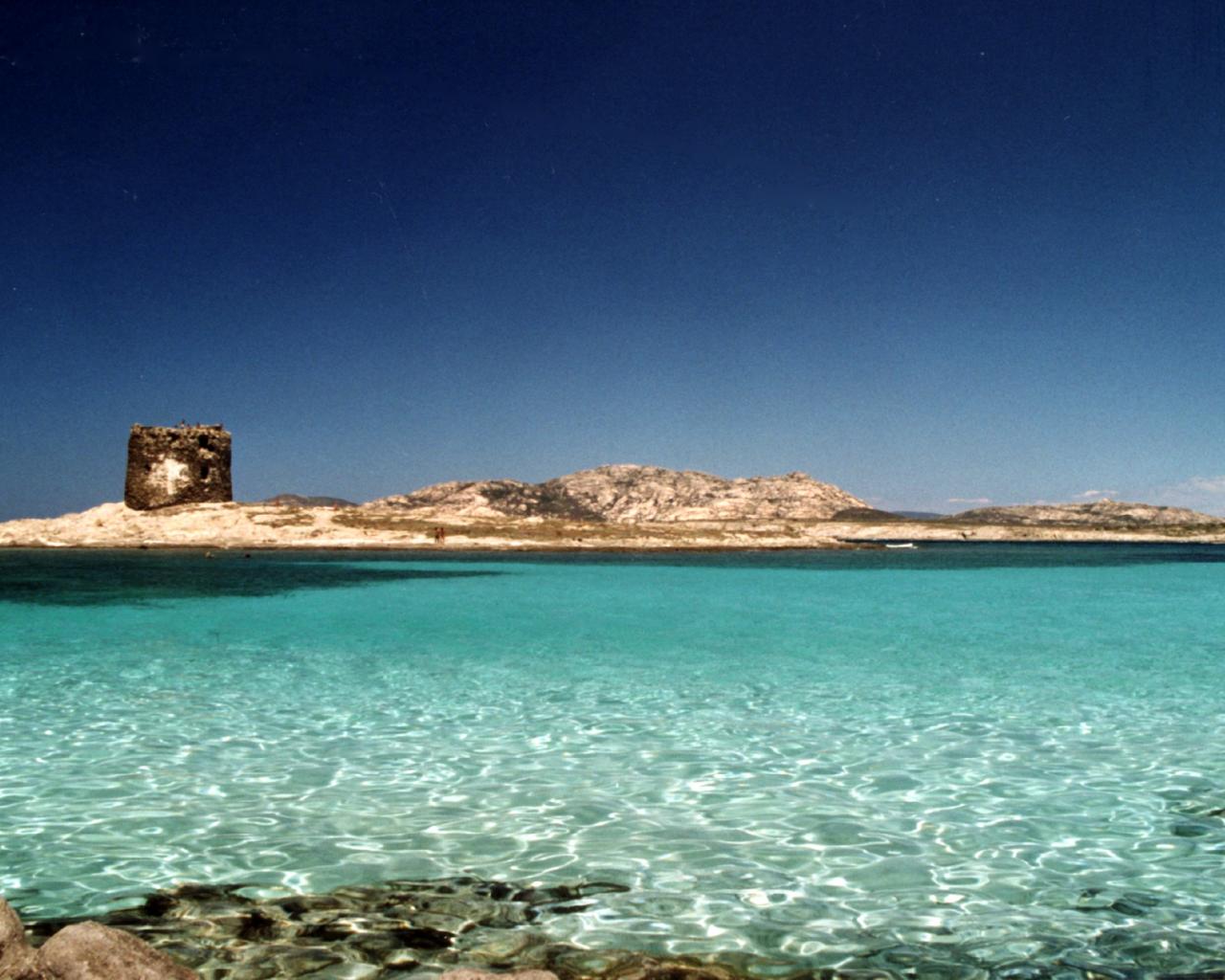 Обои Старинная башня на берегу на острове Сардиния, Италия