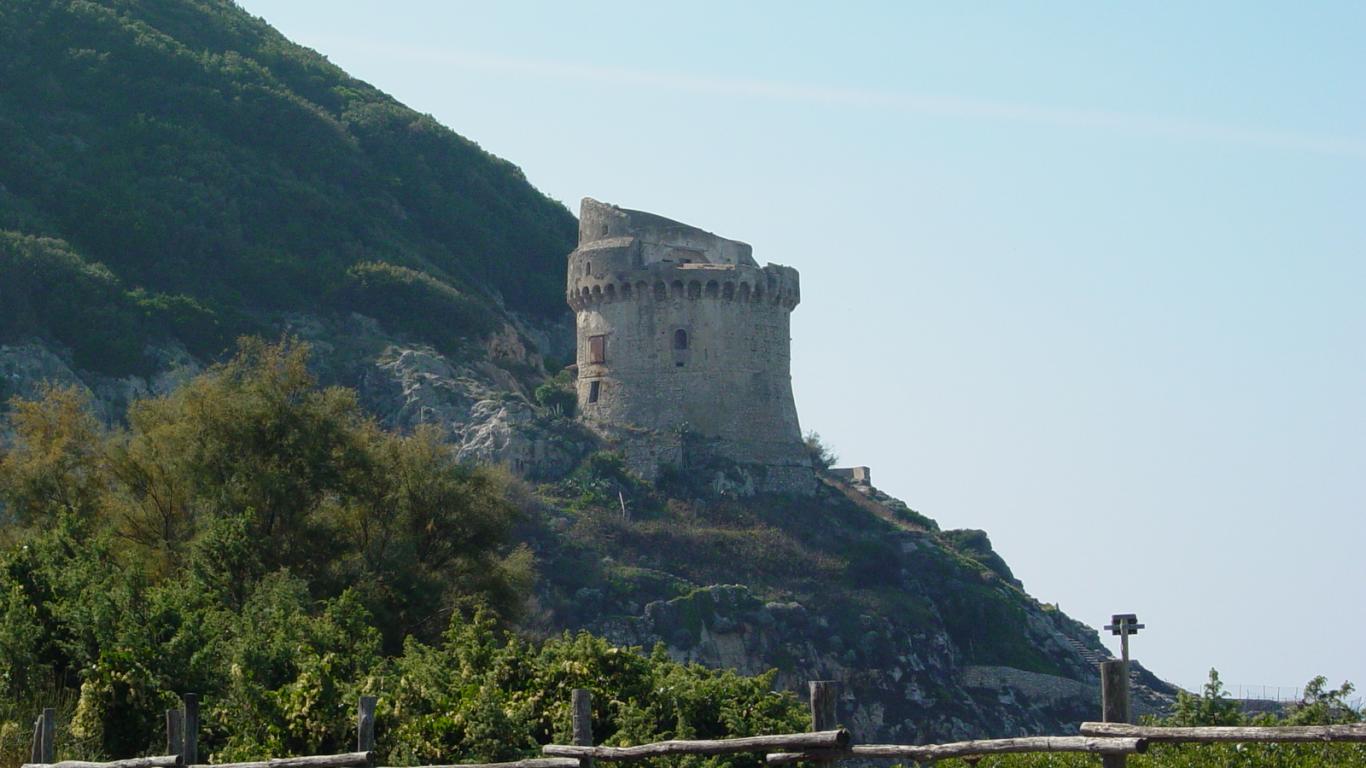 Обои Башня на склоне горы на курорте Сабаудия, Италия