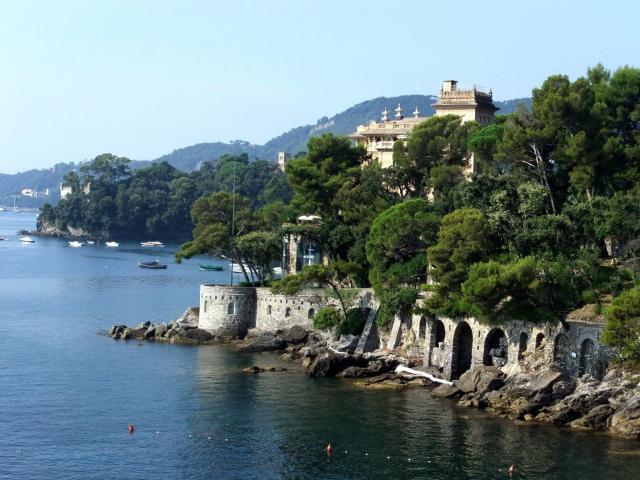 Обои Скалистые берега на курорте Рапалло, Италия