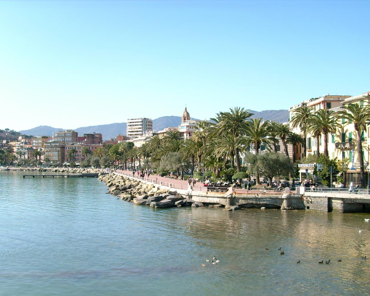 Обои Набережная на курорте Рапалло, Италия
