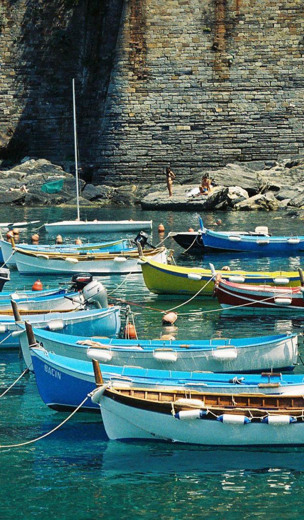 Обои Лодки в бухте на курорте Рапалло, Италия