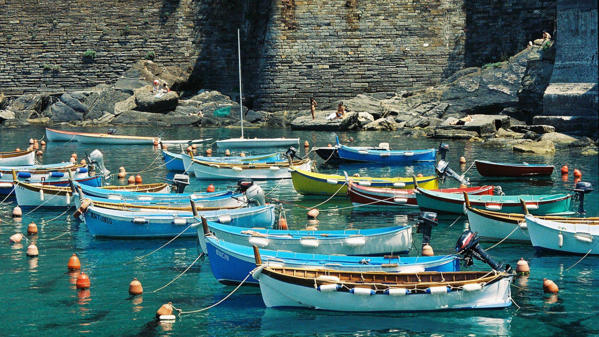 Обои Лодки в бухте на курорте Рапалло, Италия