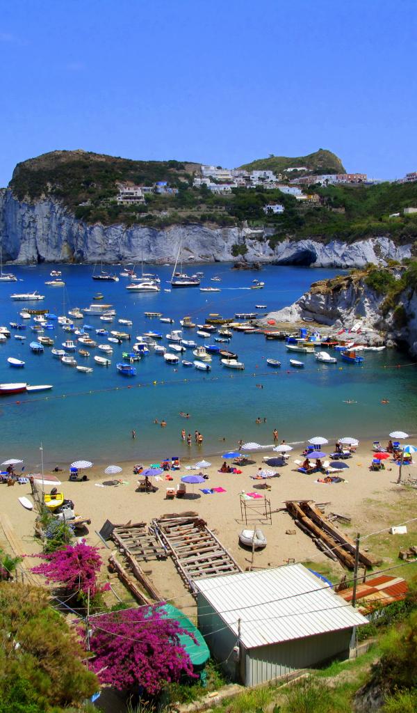 Обои Вид на бухту сквозь скалы на острове Понца, Италия