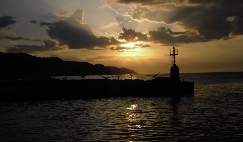 Обои Закат на пляже на курорте Пизавр, Италия