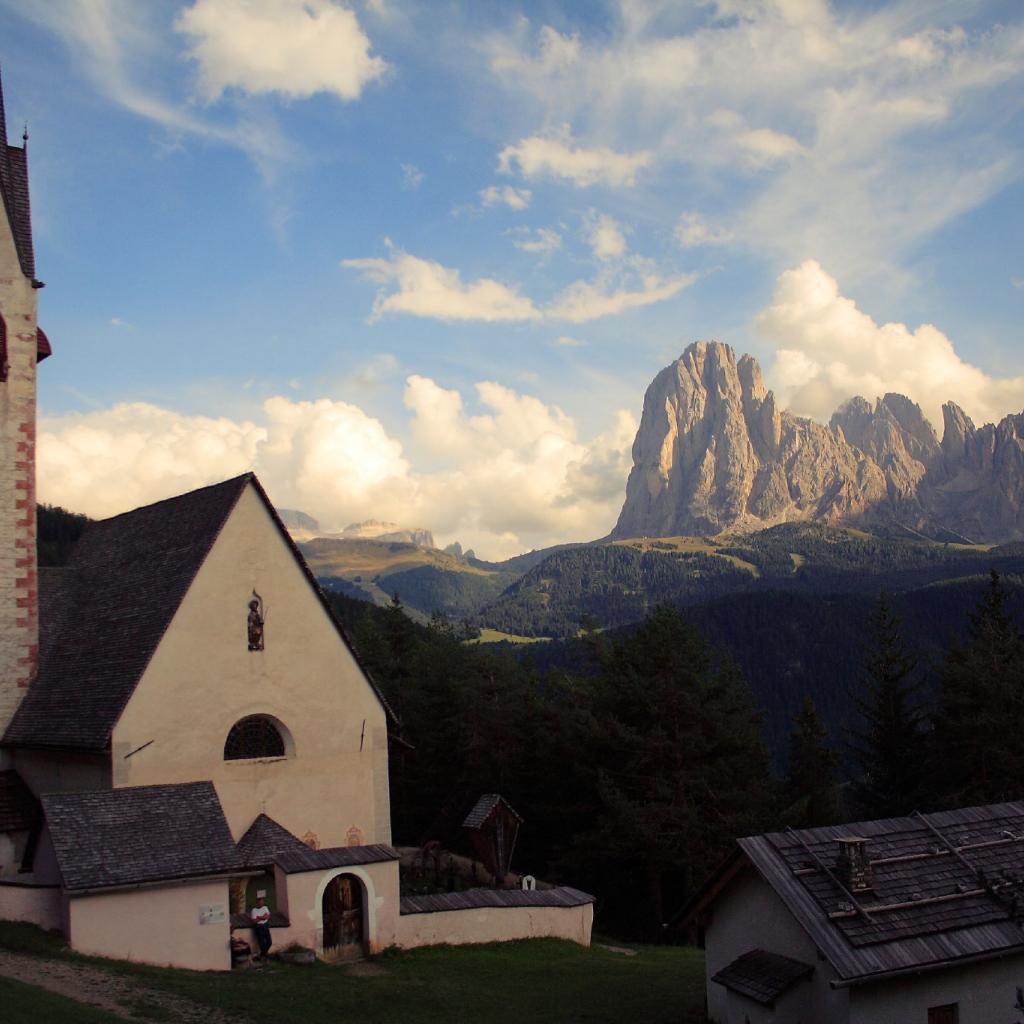 Обои Старинная церковь на курорте Ортизей, Италия