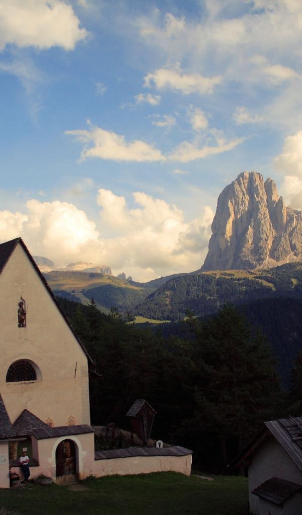 Обои Старинная церковь на курорте Ортизей, Италия