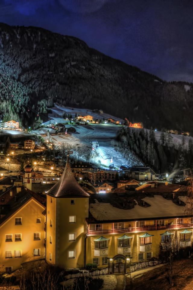 Обои Ночные огни на курорте Ортизей, Италия