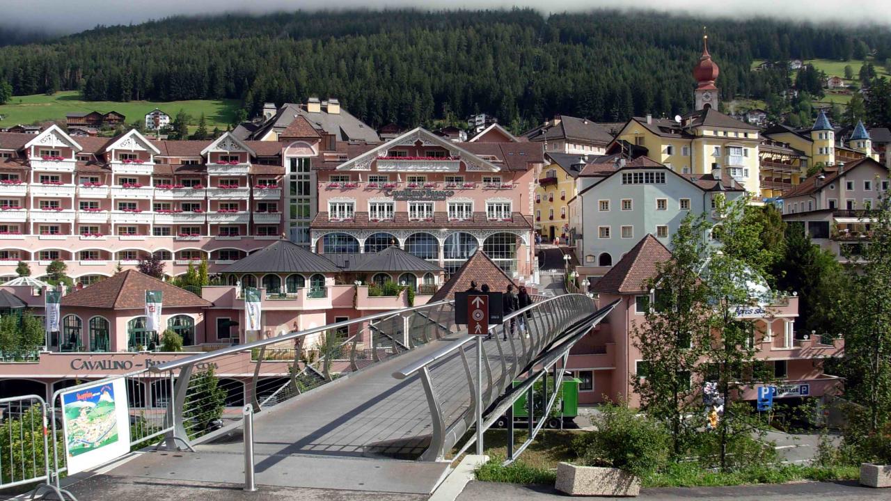 Обои Пешеходный мост на курорте Ортизей, Италия