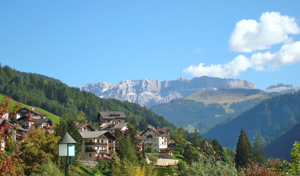 Обои Дома на склоне горы на курорте Ортизей, Италия