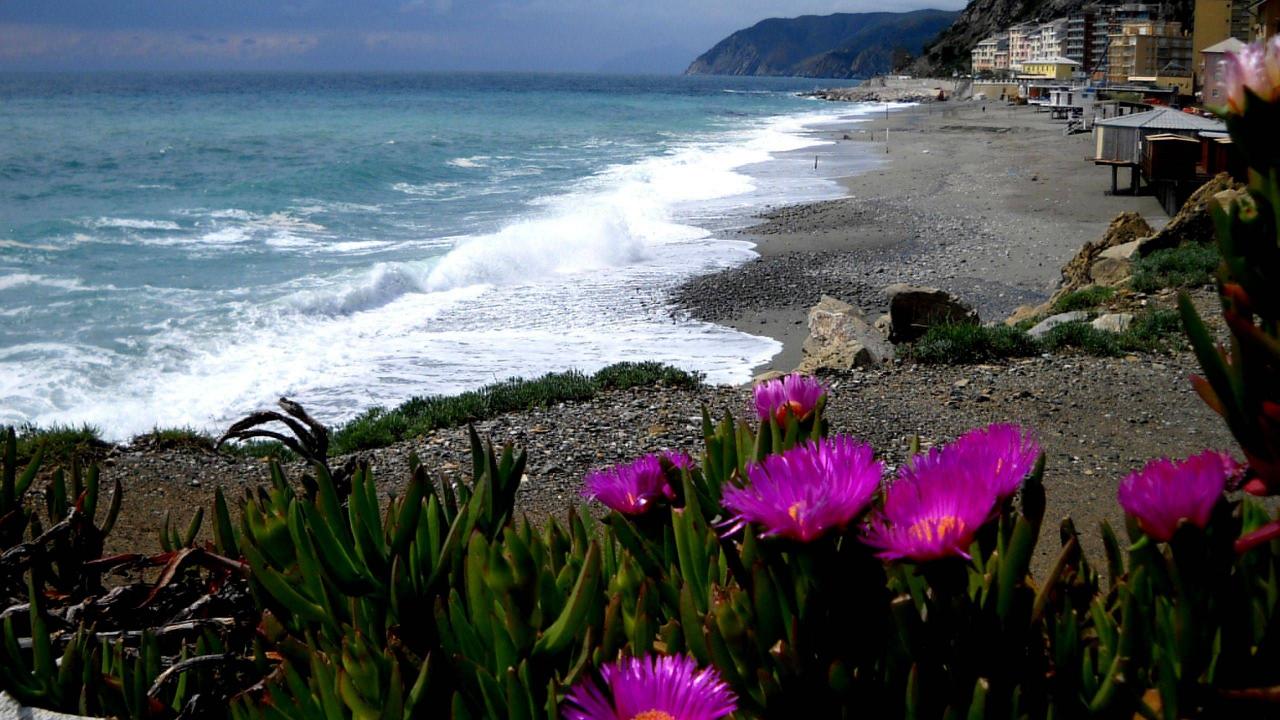 Обои Цветы на пляже в Лигурии, Италия