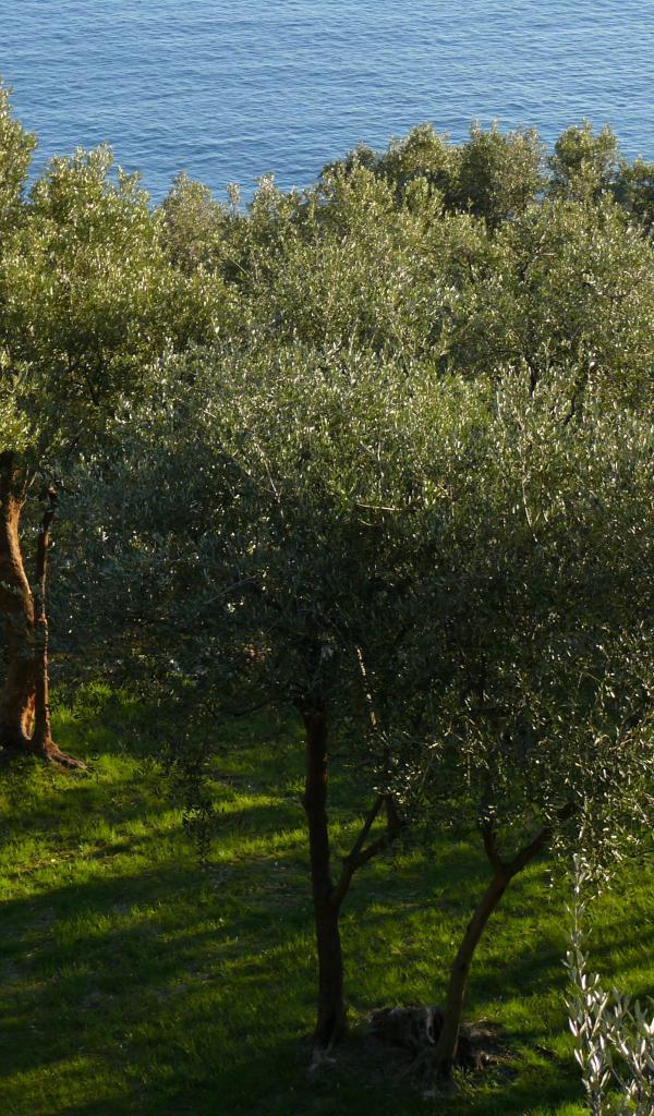 Обои Оливковые деревья на фоне моря в Лигурии, Италия