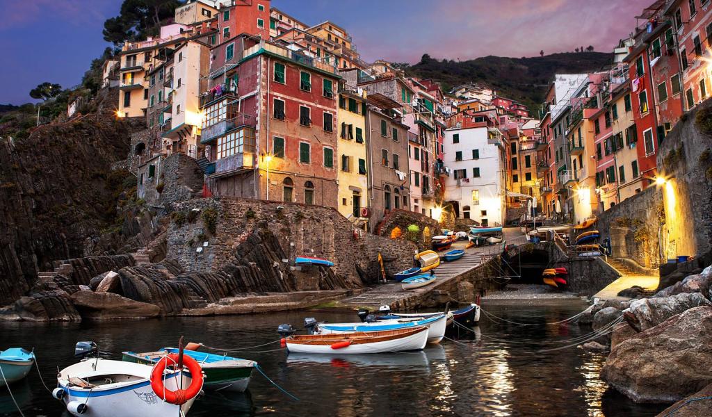 Обои Лодки у причала в Лигурии, Италия