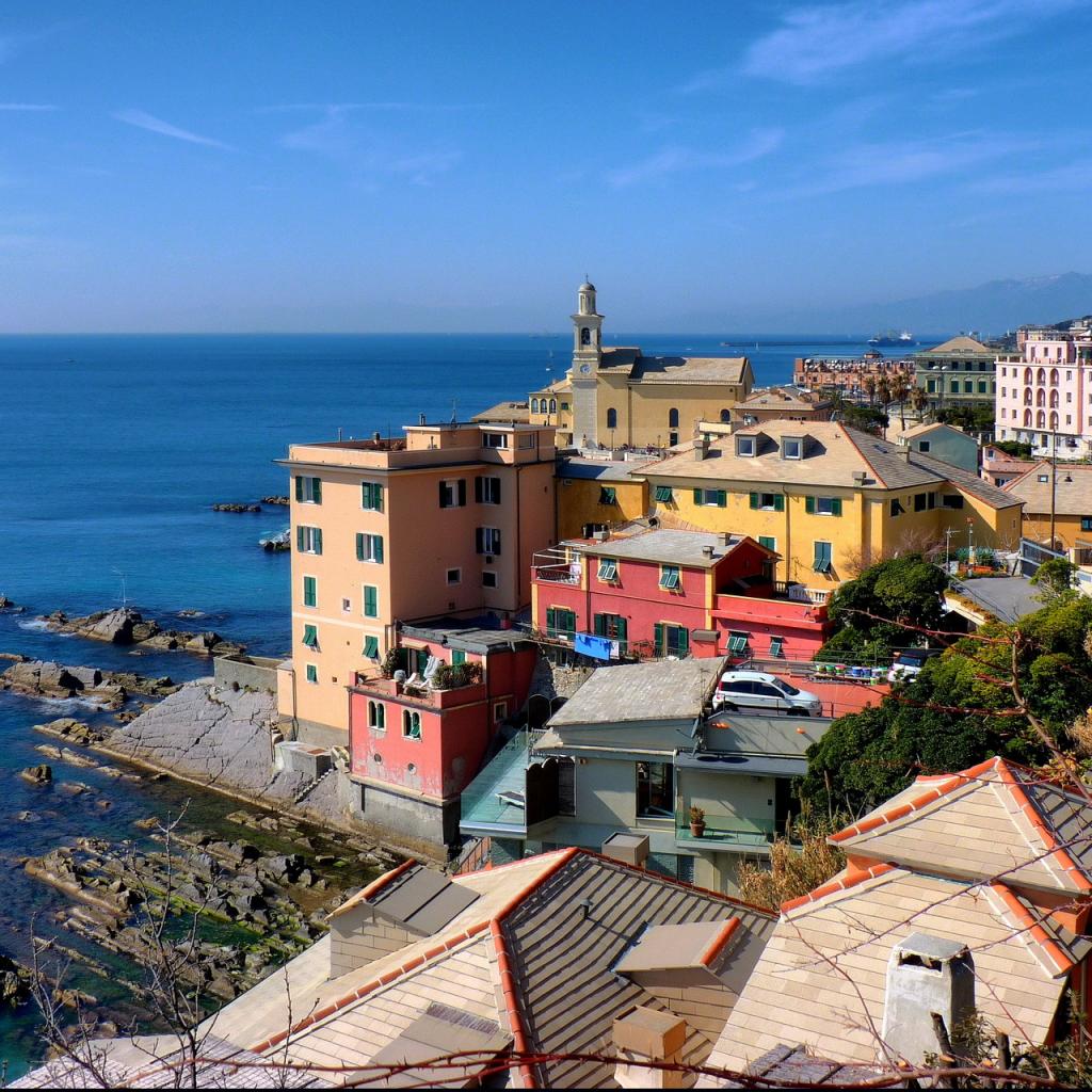 Обои Каменистый берег в Генуе, Италия