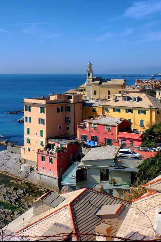 Обои Каменистый берег в Генуе, Италия