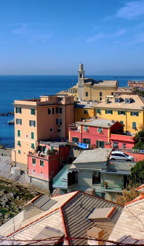 Обои Каменистый берег в Генуе, Италия