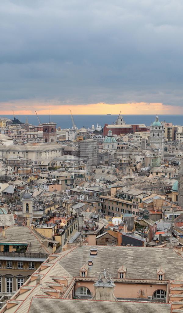 Обои Закат над городом в Генуе, Италия