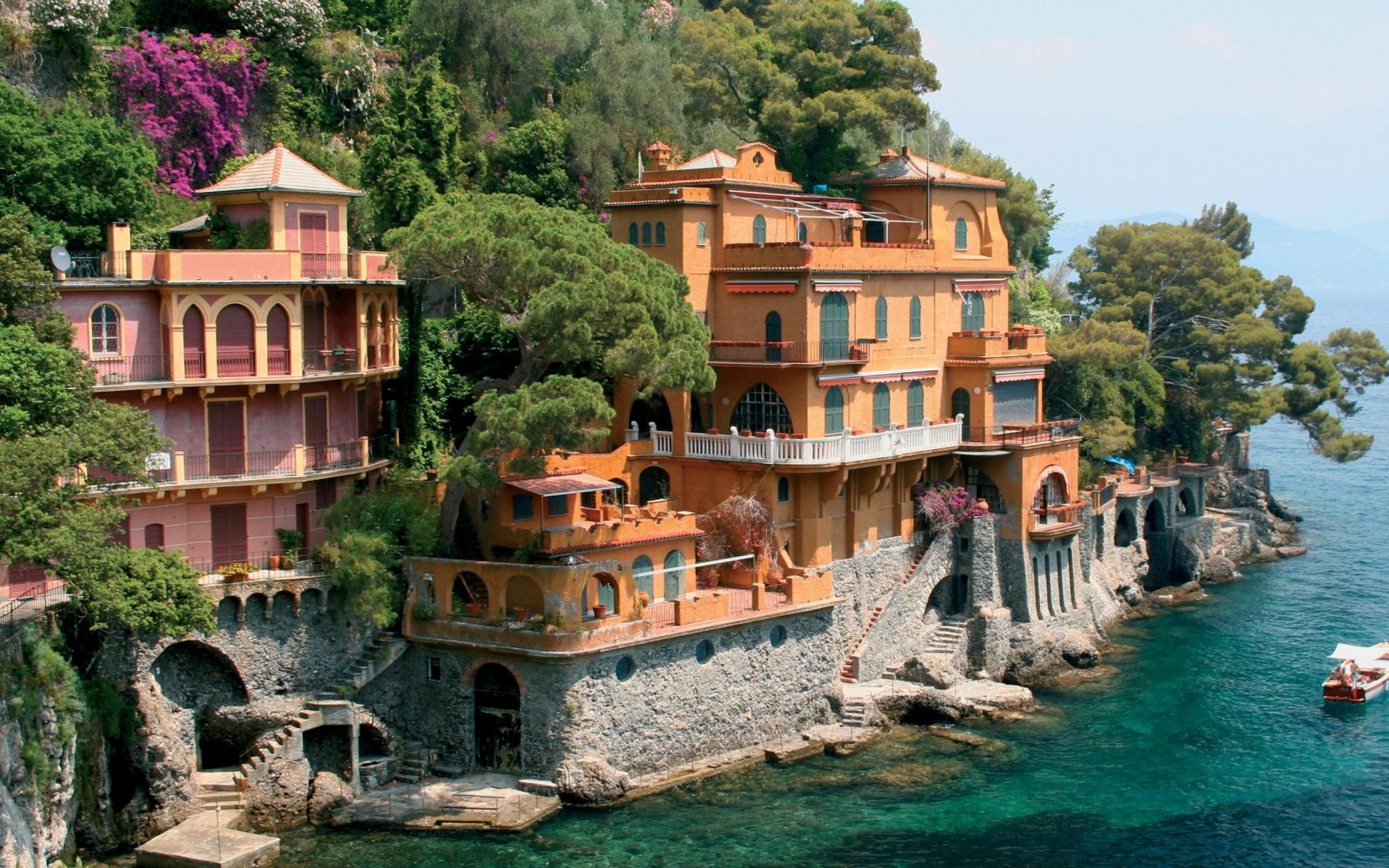 Обои Дома на набережной в Генуе, Италия