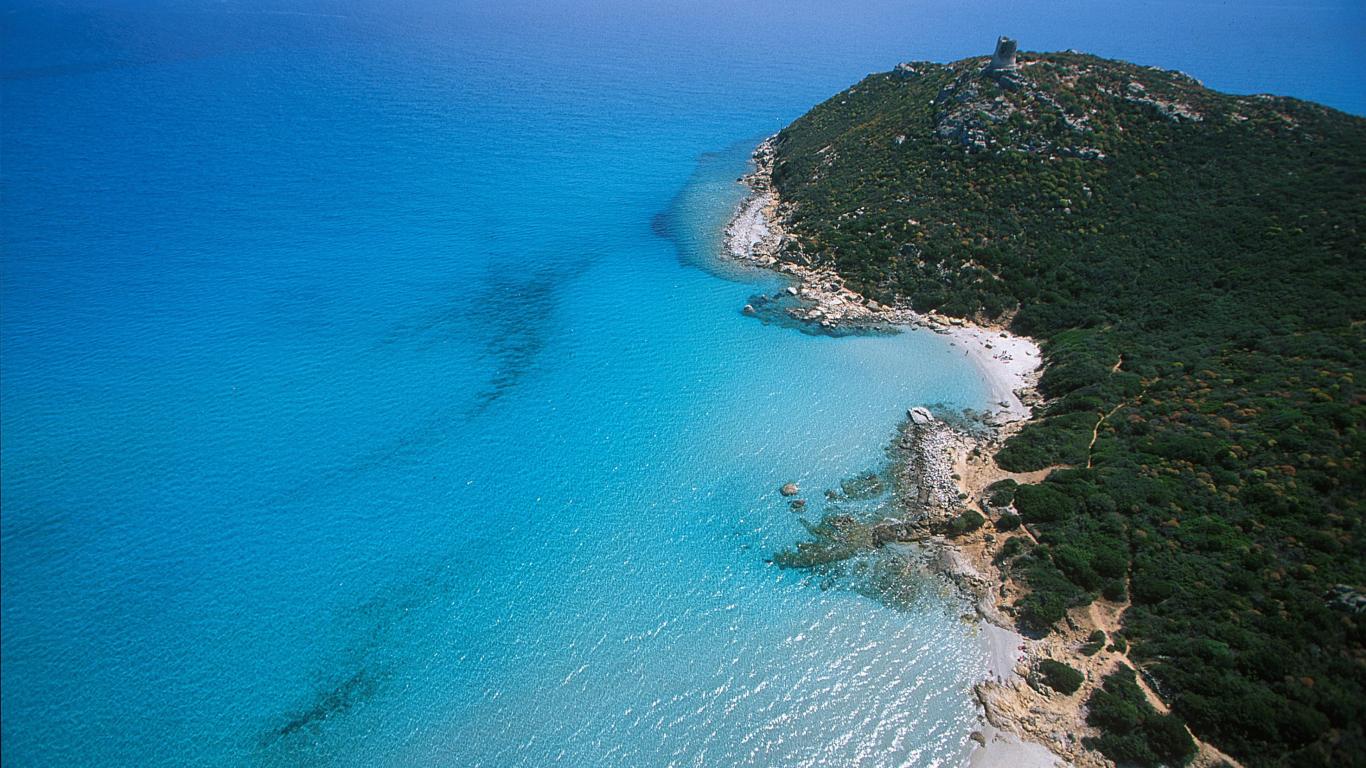 Обои Побережье на курорте Вилласимиус, Италия