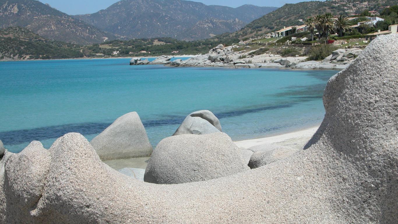 Обои Каменистый берег на курорте Вилласимиус, Италия