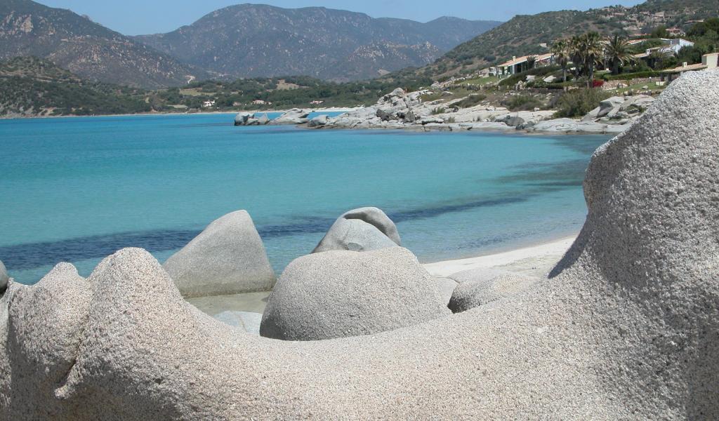 Обои Каменистый берег на курорте Вилласимиус, Италия