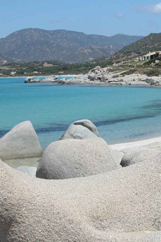 Обои Каменистый берег на курорте Вилласимиус, Италия