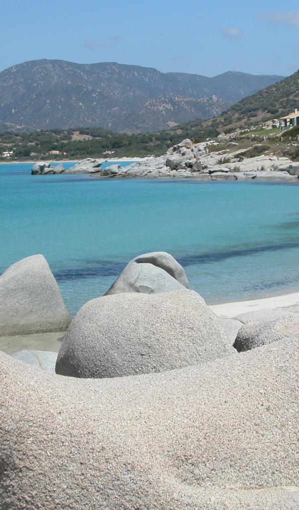 Обои Каменистый берег на курорте Вилласимиус, Италия