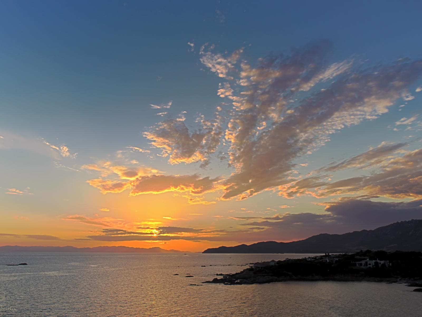 Обои Закат на пляже на курорте Вилласимиус, Италия