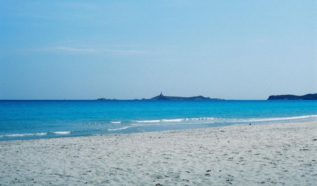 Обои Голубое море у берега на курорте Вилласимиус, Италия