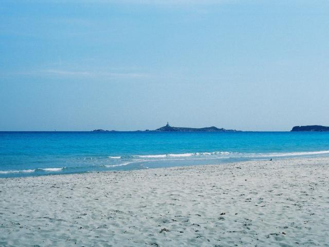 Обои Голубое море у берега на курорте Вилласимиус, Италия