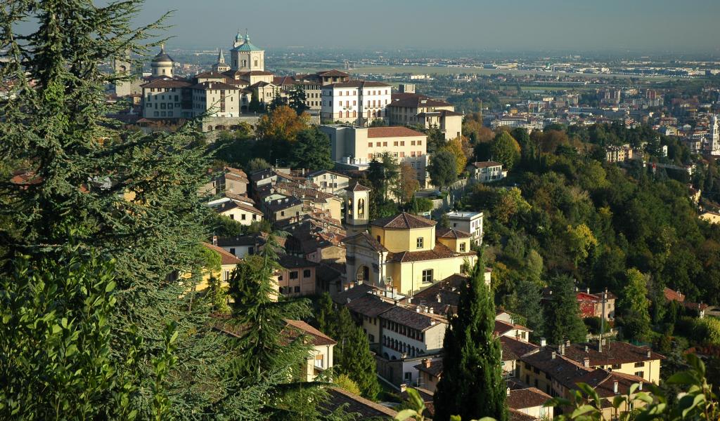 Обои Панорама города в Бергамо, Италия