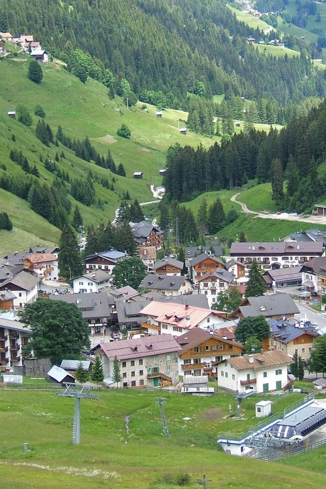 Обои Панорама на горнолыжном курорте Арабба, Италия