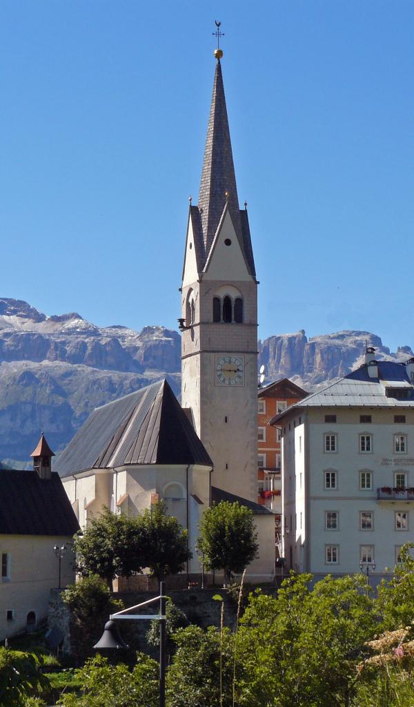 Обои Башня с часами на горнолыжном курорте Арабба, Италия