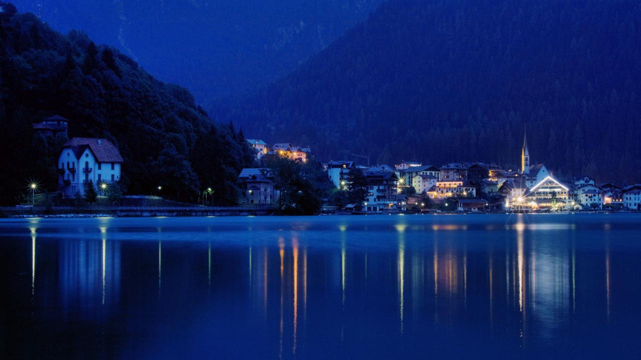 Обои Ночные огни на курорте Аллеге, Италия