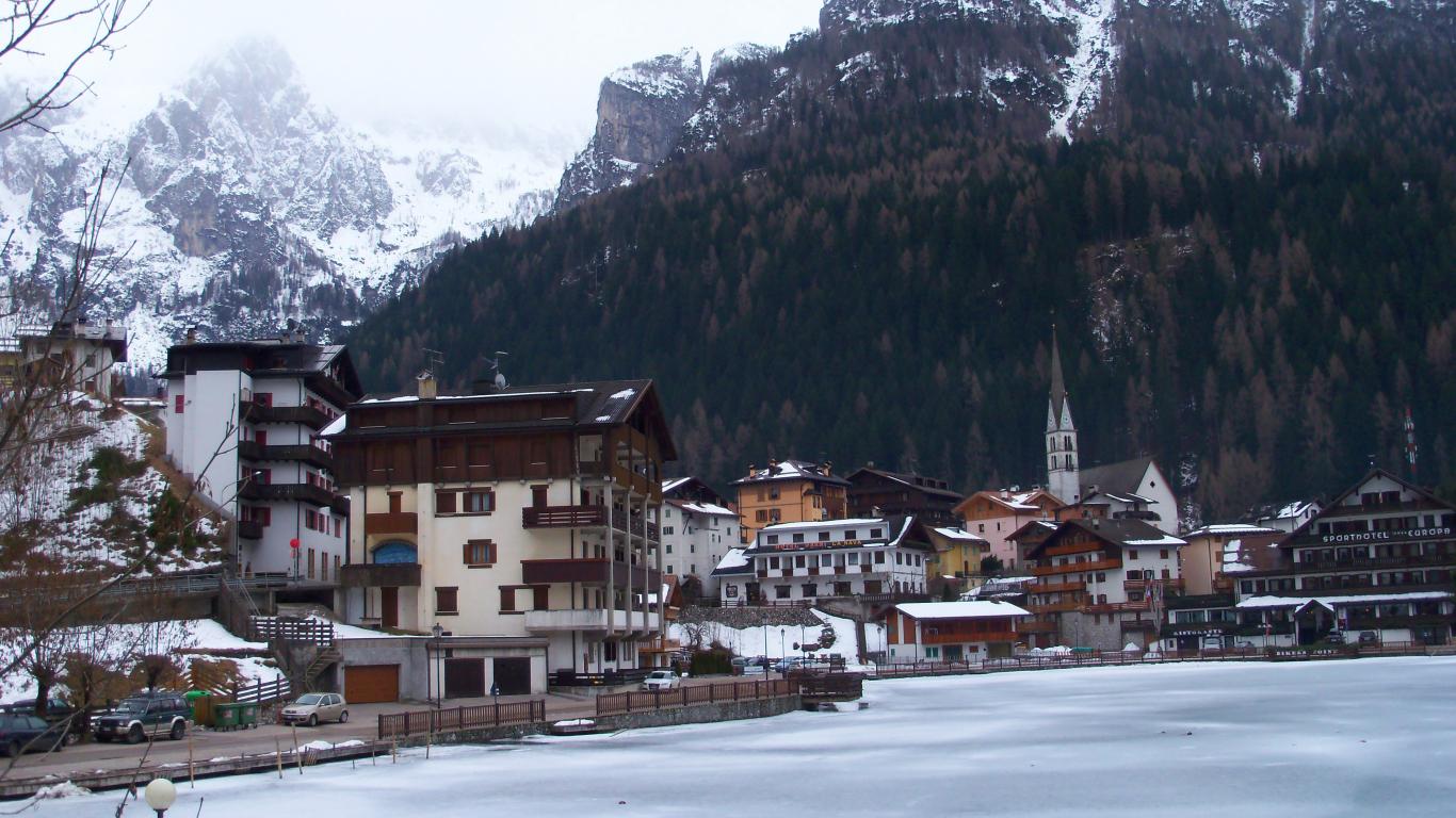 Обои Зимний пейзаж на курорте Аллеге, Италия