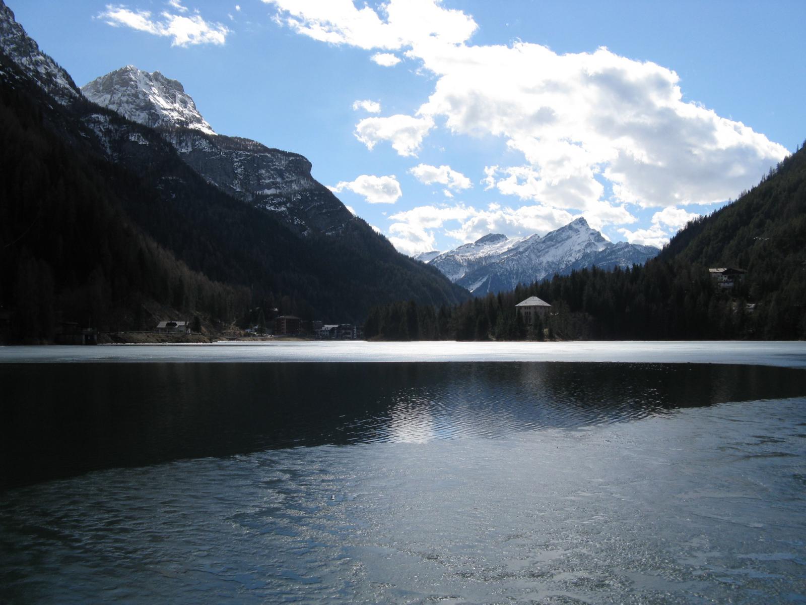 Обои Зимнее озеро на курорте Аллеге, Италия