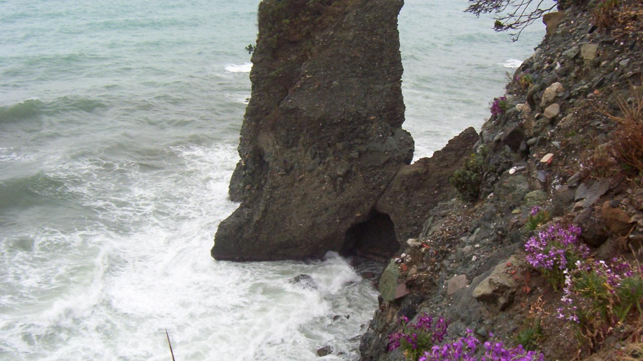 Обои Скала у берега на курорте Челле Лигуре, Италия
