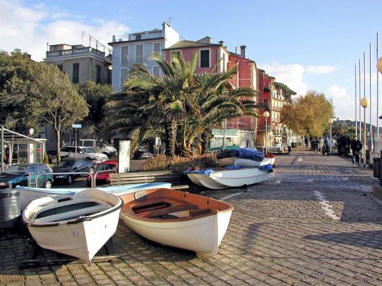 Обои Лодки на набережной на курорте Челле Лигуре, Италия