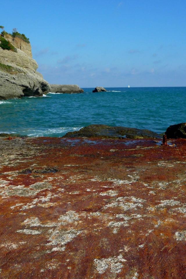 Обои Каменистый берег на курорте Челле Лигуре, Италия