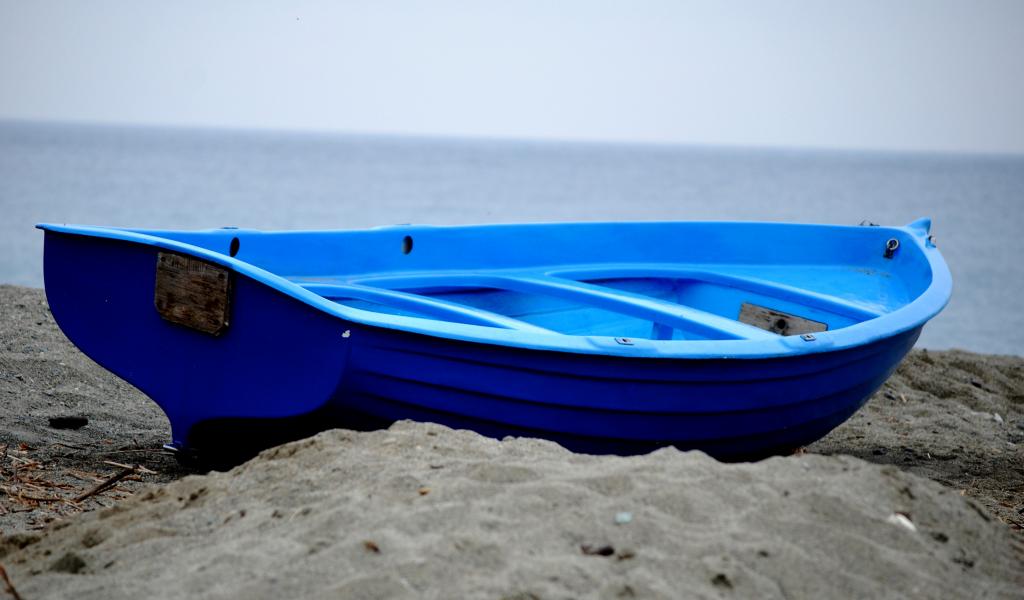 Обои Голубая лодка на пляже на курорте Челле Лигуре, Италия