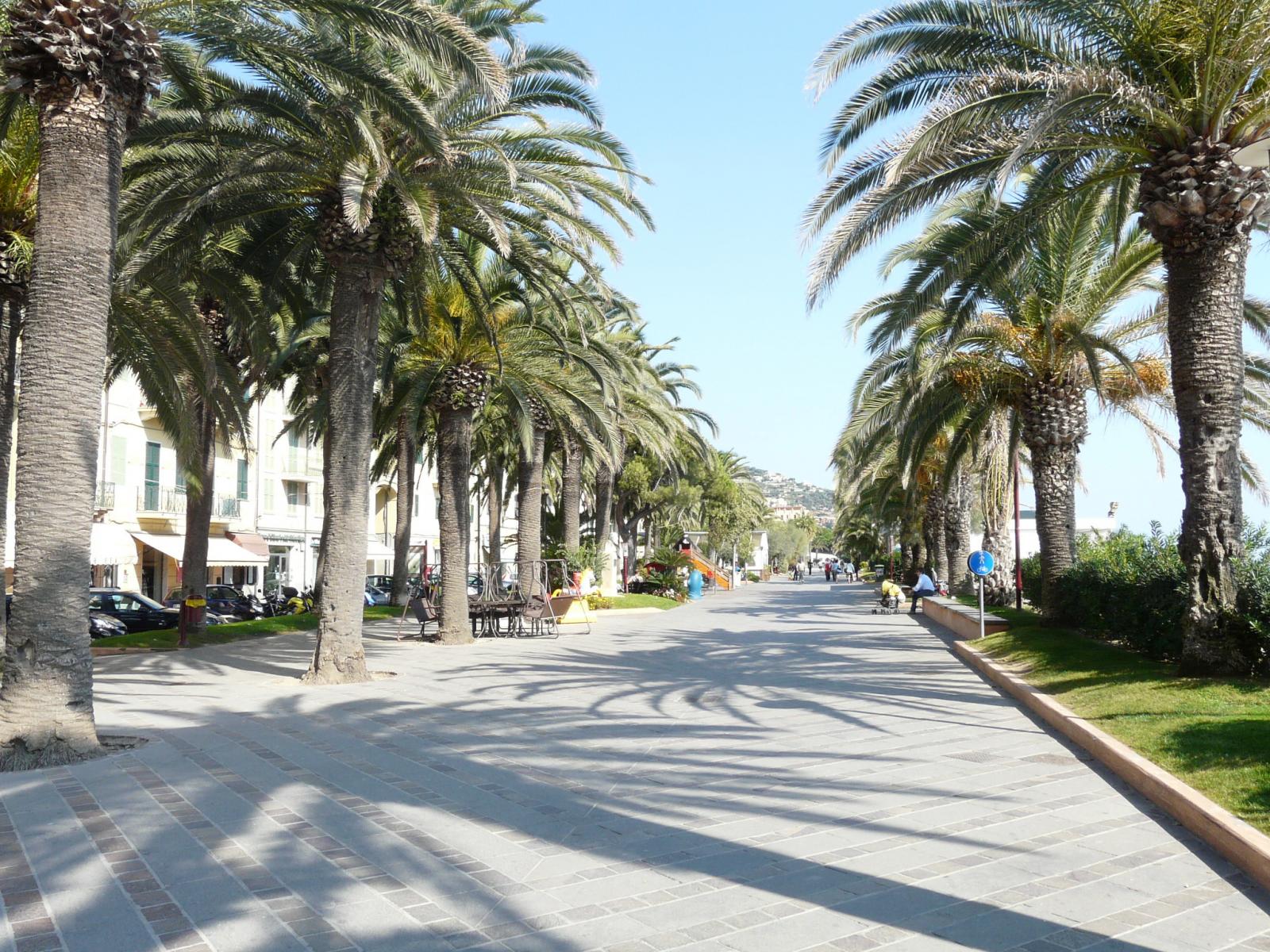 Обои Пальмовая аллея на курорте Финале Лигуре, Италия