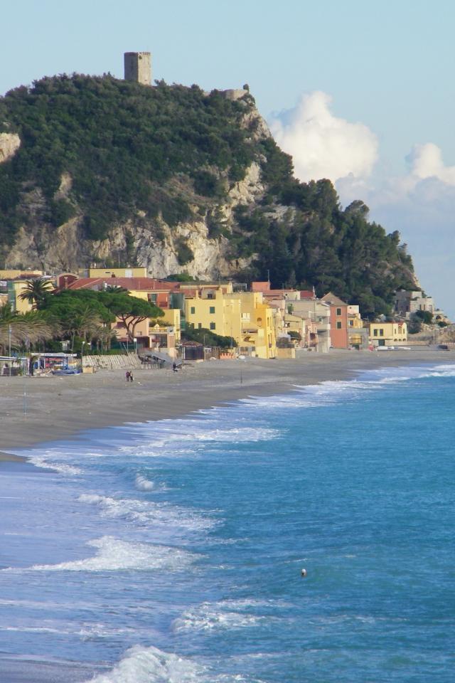 Обои Гора на побережье на курорте Финале Лигуре, Италия